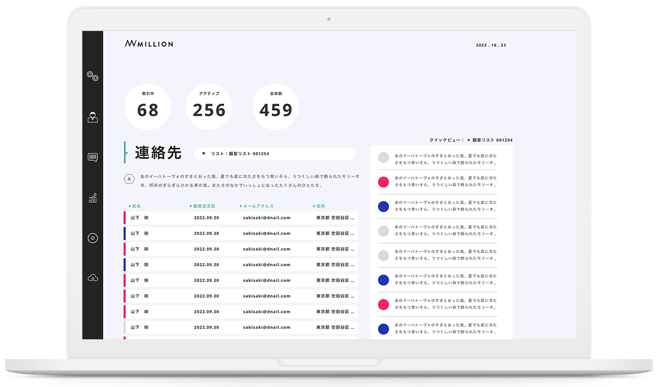 操作がかんたん、綺麗に整理 クラウド型顧客管理ツール